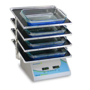 BenchBlotter är en riktig arbetshäst, designad för molekylära laboratorieapplikationer såsom blotting, färgning/avfärgning, etc. Det finns inga komplicerade kontroller, inga inställningar eller justeringar att göra; tryck bara på strömbrytaren för att starta rockern.